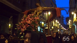 La tamborrada, la Procesión de La Burreta, el domingo de Ramos, la Procesicón de la Despedida, el Vía Crucis, la Procesión del Silencio y la Procesión del Santo Entierro han formado una Semana Santa que se puede ver al detalle con los vídeos de pagina66.com.