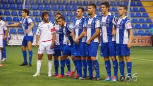 En la primera mitad, los locales han mostrado su superioridad, dominando en todo momento a su rival. Así en el minuto 11 se ha conseguido el 1-0 en una jugada colectiva iniciada por el portero Marc Martínez y realizada casi al primer toque. El balón ha llegado a Alfaro que ha centrado y el defensa José Ruiz ha introducido el balón en propia puerta ante la proximidad de Abraham.