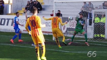 Los locales han reaccionado pronto y en el minuto 12, el meta Marc Martínez ya ha tenido que realizar una gran parada a disparo de Óscar Muñoz, pero no ha podido hacer nada en el 24 cuando un centro, que no ha podido sacar Navarro, le ha llegado a Morgado quien, solo, le ha fusilado sin contemplaciones, logrando el 1-0.