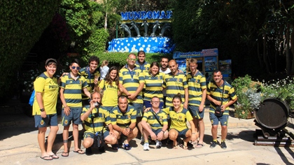 La XVI edición de este campus ha dado inicio en el colegio La Salle, donde los participantes se han dividido en grupos. A las órdenes de Pepe Aroca y bajo la atenta mirada de los futbolistas Jorge Molina y Julián Cerdá 'Juli' y el resto de técnicos, han subido al autobús para dirigirse al polideportivo Francisco Laporta.