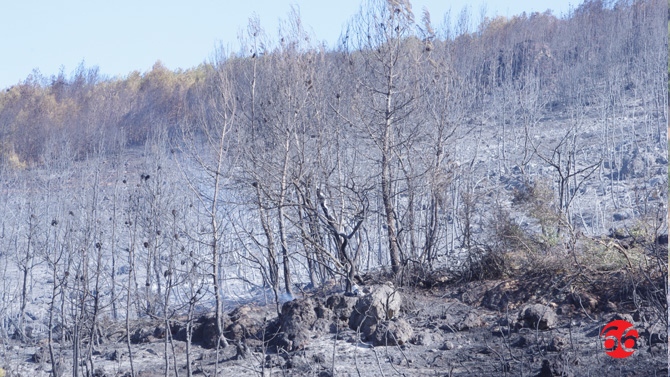 El color es el negro. Y el gris. Y otro gris. Y más negro. La noche se instala en las zonas quemadas, aunque sean las cinco de la tarde de un 29 de julio. Todo es negro, porque todo ha muerto. Si observas de cerca, no hay nada. Una tela de araña, salpicada por miles de gotas puede permanecer entre dos arbustos, pero sin nada. No hay gusanos, no hay mariposas, no hay ni moscas.