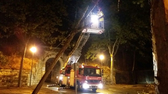 Los bomberos han actuado en la noche del martes 13 a las 21 h. para cortar un árbol caído sobre un cable telefónico en la entrada a la urbanización de Gormaig.