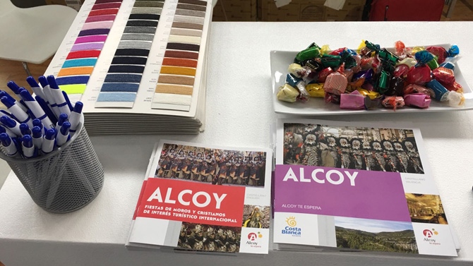 Diferentes empresas de la comarca han acudido a la Feria en esta edición. De ellas Hilaturas Miel, una de las muchas que creó el empresario alcoyano Lionel Grau, fallecido hace poco más de un mes, en su estand, además de los catálogos de sus productos, esta vez también ha presentado unos trípticos y folletos de 'Alcoy te espera' para hacer difusión de la ciudad. Además en la TV del estand, se ha proyectado el video promocional de esta misma campaña.
