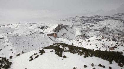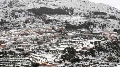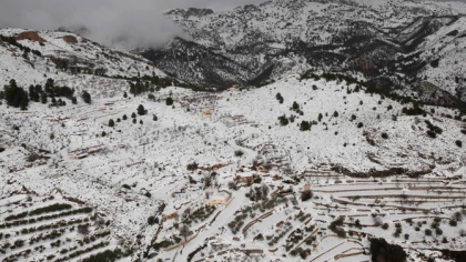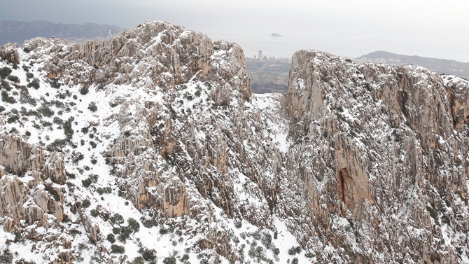 La Diputación Provincial de Alicante ha realizado una serie de fotografías e imágenes aéreas de la nieve, tomadas durante el mediodía del viernes 20 desde un helicóptero, en distintos puntos del norte e interior de la provincia de Alicante como pueden ser Confrides, Aitana y el Puig Campana.
