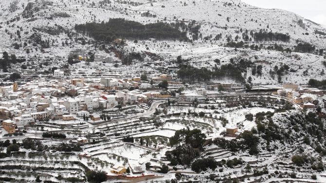 Se trata de imágenes de gran belleza en las que se ven paisajes más cercanos al Pirineo o los Alpes que al interior de la provincia alicantina. El fuerte temporal de nieve que ha llegado hasta las ciudades, ha dejado magníficos paisajes en las montañas. También se puede ver la labor de los bomberos durante este temporal.