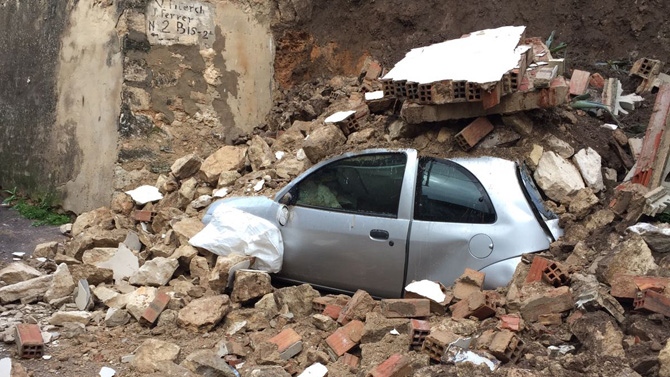 Varios vehículos aparcados se han visto afectados y uno ha acabado bajo los escombros.