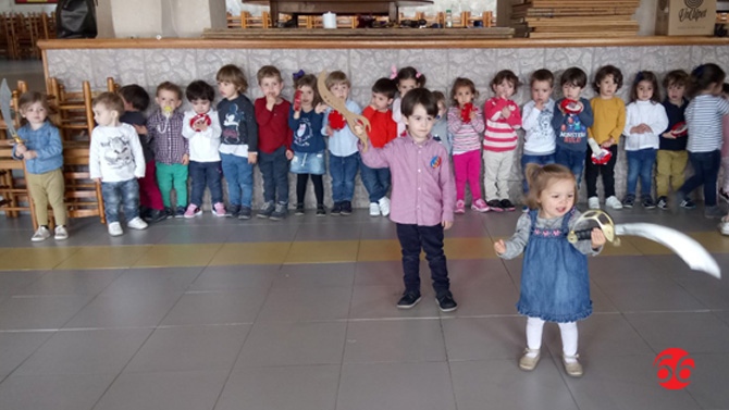 Els alumnes d'un i dos anys de l'Escola Infantil Sol Solet han passat el matí en la filà Gusmans i d'aquesta manera han pogut viure i guadir de les Festes de Moros i Cristians de prop.