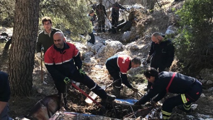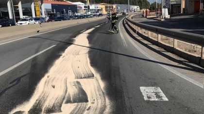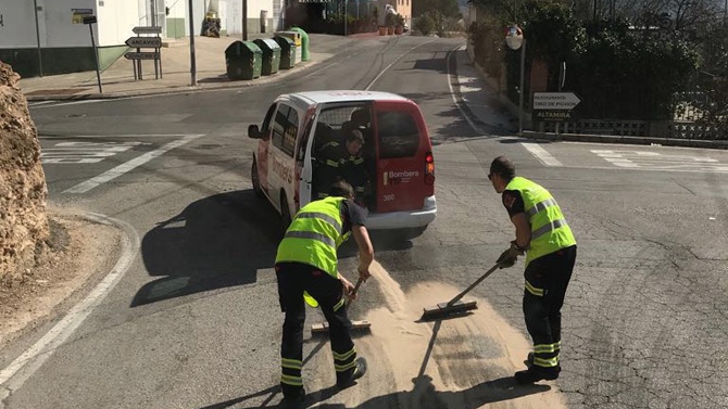 Los bomberos han tenido que intervenir para limpiar la calzada por el vertido de un camión que se ha extendido por espacio de 3 kilómetros en la autovía de Alcoy a Cocentaina.