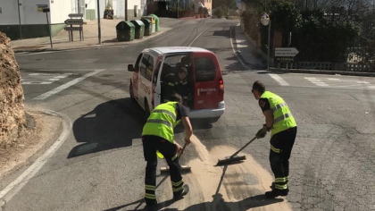 Para contrarrestar el liquido en la calzada, se han tenido que utilizar un total de 21 sacos de sepiolita, material mineral absorbente utillizado en estos casos, de 20 kilos cada uno.