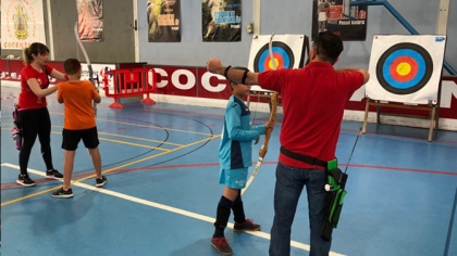 Para ello han montado dos parapetos y han llevado unos arcos recurvos de iniciación de diferentes tamaños para que puedan probar niños y niñas de diferentes edades. Los chavales se lo han pasado bien introduciéndose en el mundo del tiro con arco y los representantes del club aún mejor enseñándoles.