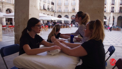 La família del Cicle Superior d'Estètica Integral i Benestar del CIP FP Batoi ha organitzat una activitat pràctica en la Plaça de Dins.