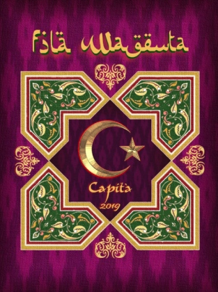 El disseny representa un tapís àrab compost per quatre peces que formen una estrella de huit puntes amb brodats dels colors principals de la filà beduïna. És obra de Juan Climent i en ella destaca el color característic i que dona nom a aquesta fià mora, a banda del dibuix del teixit mallorquí, en homenatge al lloc de residència del Capità i a la terra natal de la Favorita, Tina Maza.