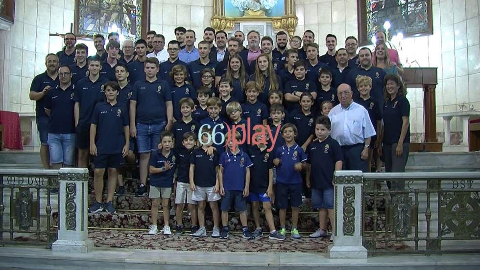 Los componentes de la primera plantilla, los jugadores del equipo base, técnicos, directivos, autoridades y familiares, han asistido a este sencillo y breve acto que ha acabado con una multitudinaria foto de familia en las escaleras del altar de la iglesia.