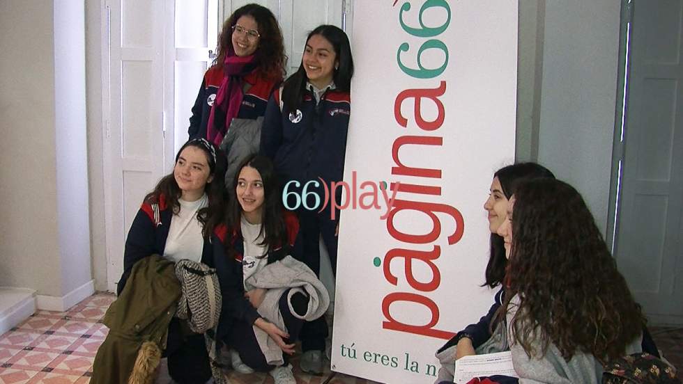 Aquesta xicoteta entrevista l’hem repetit fins a 5 voltes durant aquest divendres i com ens agrada recolzar aquestes iniciatives educatives, hem convidat alguns dels grups a visitar Pagina66). Per exemple, un grup del col·legi Esclaves ha aprofitat per a fer-se una foto amb el logo i el cartell que tenim al hall només entrar. Altre del mateix centre educatiu necessitava fer una representació de mimo i han utilitzat el plató de Pagina66) per a simular una entrevista entre les membres del grup.