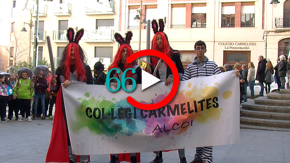 Al ritme de 'Vedruna Drums', una batucada formada per membres del col·legi Carmelites, alumnes, professors i algun familiar han desfilat per diversos carrers del Centre d'Alcoi en aquest dia de Carnestoltes escolar.