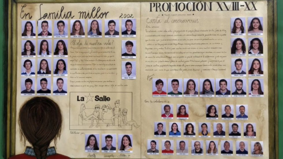 Moltes són les imatges curioses que ens ha deixat la Covid-19 per al record. Una d'aquestes és com la gent es reinventa per a gaudir d'uns dels moments més emotius de la vida, la graduació. I això és el que han fet des del col·legi La Salle d'Alcoi, que ha reunit a tots els alumnes de 2n de batxillerat per a celebrar la cerimònia de graduació per videoconferència.