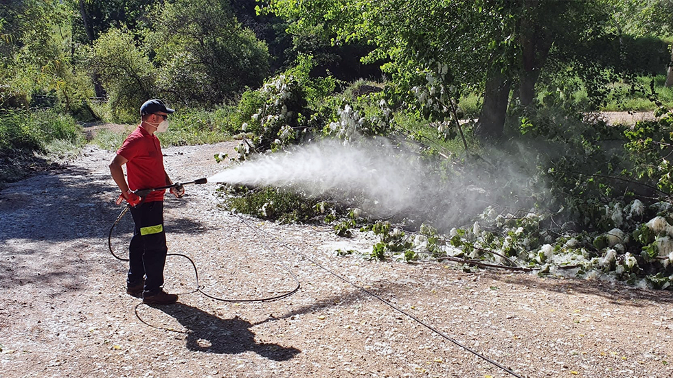 Por otro lado, desde la Concejalía han destacado que la climatología de los últimos días ha sido propicia y las lluvias acumuladas han ayudado a mojar y concentrar la semilla del chopo, disminuyendo el peligro de incendio de ésta. Durante las próximas semanas, se continuará con los trabajos de tirar agua sobre las semillas evitando así que se produzcan incendios forestales.