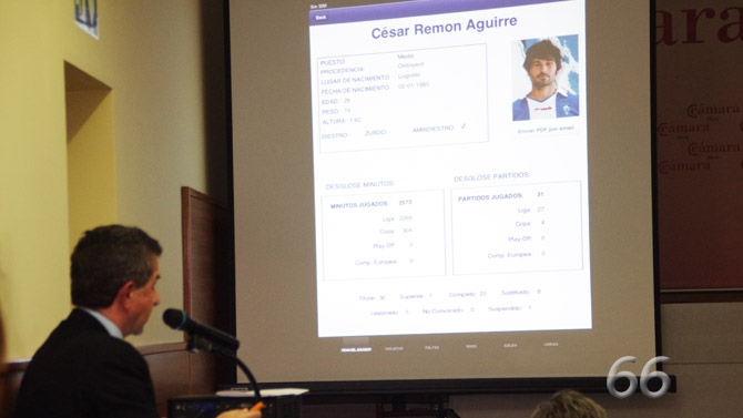 El doctor José Antonio Rubio ha ejercido de maestro de ceremonias con una demostración práctica durante la presentación de la nueva aplicación para el iPAD que lleva por nombre ‘FutbolEnDatos’.