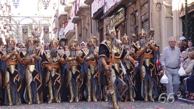 El compliment de l’horari establert al guió de l’organització ha estat la nota excel·lent d’aquesta edició. Cap a les 10 del matí, des de El Partidor ha donat inici l’Entrà. El desplegament de les hosts cristianes l’ha obert el capità cristià de la mà de la seua filà, els Gusmans. Un dels plats forts del matí per obrir boca a un públic que des de els primers minuts ja omplia les més de 17.000 cadires organizades per a l’ocasió.