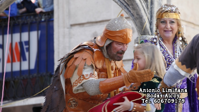 Amb el camí replet de confeti després del pas de la resta de hosts cristianes (Muntanyesos, Tomasinas, Navarros, Almogávares y Mozárabes), l’alferes cristià, Santiago Giner Pastor, germà del capità, ha fet acte de presència als carrers d’Alcoi.
