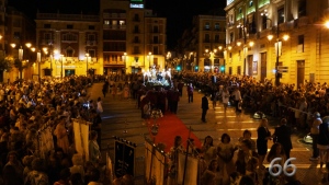 Una vez en la Plaza los feligreses han vivido con emoción la llegada de cada uno de los ramos hasta la llegada final de la imagen, todo ello mientras la ciudad se adentraba poco a poco en la noche. Tras la ofrenda, se ha realizado la convocatoria a la Romería por parte de la periodista Xesca Lloria, quien ha animado al pueblo a participar al igual que lo hacían cuando eran niños.