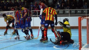 Minuto 3. Penalti que lanza Marc Figa lo detiene el portero del Manlleu pero el rechace lo aprovecha para marcar el 1-0.