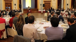 El profesor de economía de la Universidad Politécnica de Valencia, Lluís Miret, ha presentado el primer turno de ponencias. Bajo el nombre ‘Retos del sector industrial’ interviene el delegado del colegio de ingenieros industriales de la Comunidad Valenciana, Miguel Muñoz, el profesor de organización de empresas de la UPV en su Campus d’Alcoi, Emilio Golf, y el director de la Escola Superior de Disseny, centro adscrito a la Universidad Ramón Llull de Barcelona y vicepresidente de la Fundación Industria 1559 y Joan Vila, presidente de la empresa LC Paper y miembro de la patronal de la pequeña y mediana empresa de Catalunya, Antoni Garrell.