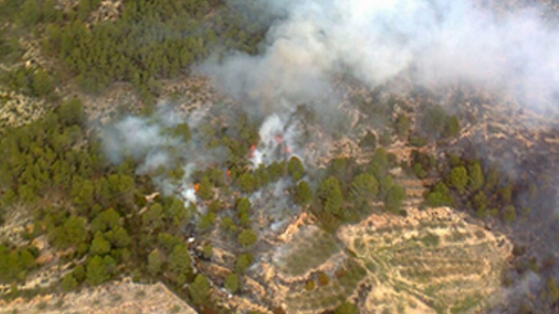 En les proximitats de la localitat de L’Orxa, en la Partida Les Fontetes, just al costat del barranc del poble, s’ha decretat un incendi forestal d’importants dimensions a les 11'50 del migdia d'aquest dimecres 25 de febrer.