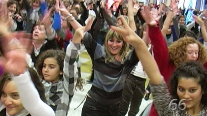 Las profesoras del Centro de Danza B&B Begoña Bravo y Begoña Moral, han dirigido a todos los bailarines improvisados. El flashmob es un tipo de baile que consiste en desarrollar una coreografía en momentos determinados a la que se invita a participar a quien lo desee.