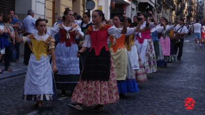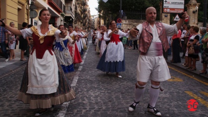 La desfilada ha començat en La Glorieta, ha baixat per Sant Nicolau, Sant Llorenç i Avinguda País Valencià fins arribar pel Parterre a la Plaça Ferrándiz i Carbonell. Fins i tot una parella de nuvis s'ha fet algunes de les seues fotos en mig del pas dels grups de danses.