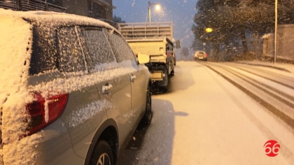 Los vehículos, en especial los de color oscuro y en otras superficies como los bancos, se han podido ver las primeras muestras del manto blanco de la nieve. La nieve se ha adelantado a lo previsto, pues se esperaba su llegada a partir de mañana.