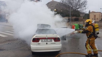 Un cotxe en flames ha sigut el centre d’atenció d’aquest matí de diumenge a Cocentaina.