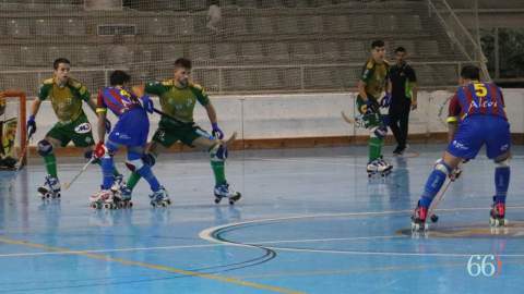 Los cinco primeros minutos han sido de presión absoluta de los chicos de Lorenzo Pastor. Tres tiros a puerta de Ferrán Formatjé, uno de Pere Cañellas, dos más de Formatjé, uno de Carlos Pérez y todos los patines sobre la mitad del campo del Santa María del Pilar. A los seis minutos una bonita jugada entre Cañellas, Formatjé y Gonzalo han vaticinado que la cosa acabaría bien.