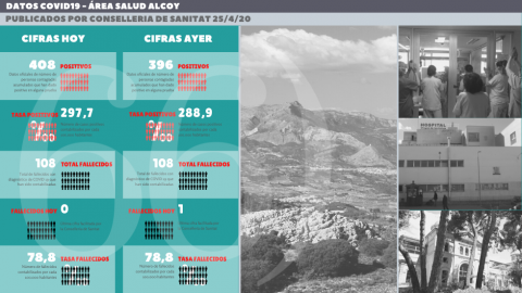 Una muerte más y 7 nuevos positivos en el área de Salud de Alcoy. Son las cifras que se suman en las últimas 24 horas a los datos oficiales de la Conselleria de Sanidad de la Generalitat Valenciana referentes al coronavirus. Son ya 109 los fallecidos y 415 los infectados de una población de 137.051 habitantes.