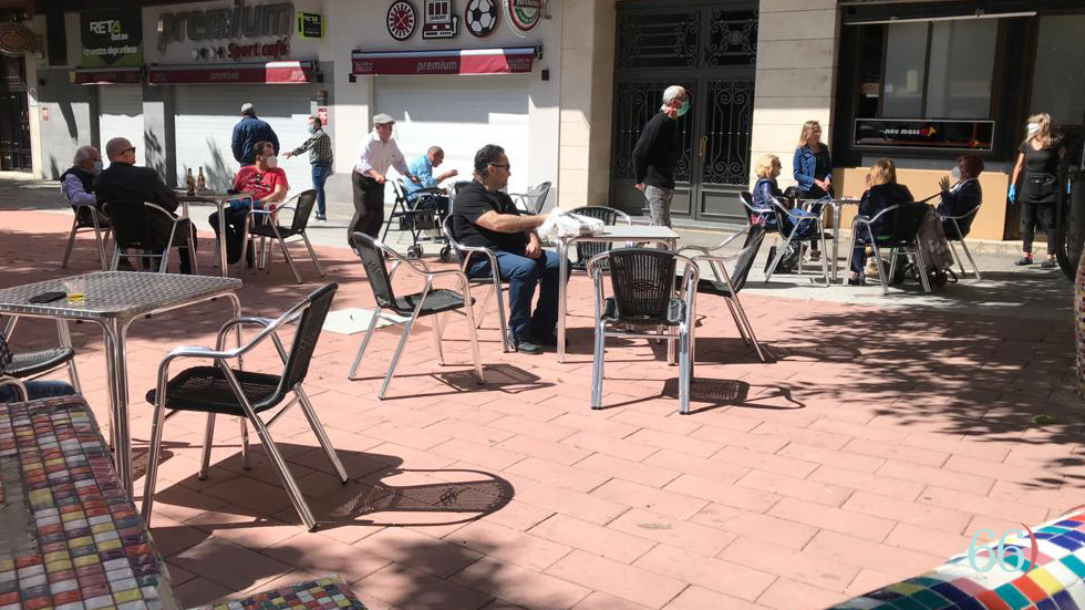 Muchos lo estaban esperando: la reapertura de los bares. Los que lo han hecho, solo han podido servir en las terrazas, unas zonas que también han cambiado respecto al año pasado. Hay menos mesas, más distanciadas entre ellas, pero eso sí, llenas todas. El aforo del 50% ha hecho que en algunos casos estos establecimientos hayan ampliado su espacio de terraza en la vía pública. Ni sirvelleteros ni cartas y desinfección entre cliente y cliente.
