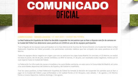 Jugadores, cuerpo técnico y directivos que estaban en la Ciudad del Fútbol de Las Rozas desde el viernes han tenido que salir a toda prisa porque la Federación no quería que permaneciesen allí, toda vez que hasta esas instalaciones se dirigían los miembros del CD Marino de Tenerife, club que ha dado los tres casos positivos de COVID-19 que han producido esta situación.