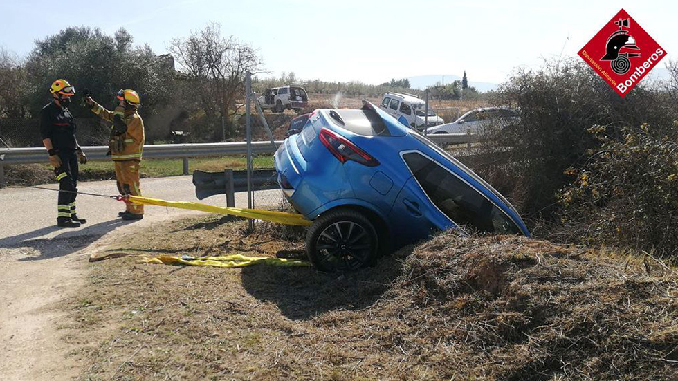 Els bombers han rescatat una dona que a punt ha estat de caure al fons d’un barranc prop de la localitat de l’Alqueria d’Asnar. El vehicle que portava ha quedat en una posició inestable i a poc marge de caure al fons.