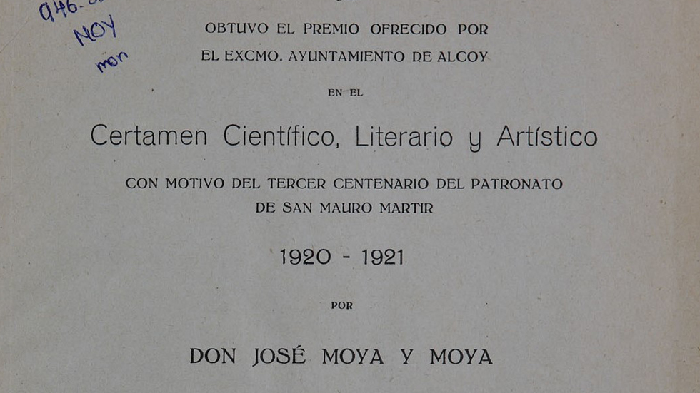 També la Monografía histórica, de José Moya (1922), un dels primers estudis monogràfics sobre els terratrémols i el patronatge de sant Maure, amb el qual el seu autor, futur cronista de la ciutat, va obtindre un premi en un certamen literari celebrat amb motiu del 3r Centenari del Patronatge del sant. Com a curiositat, hi ha una ressenya de les persones que van perdre la vida en els terratrémols ocorreguts el 2 de desembre de 1620.
