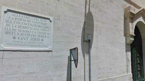 El cartell en qüestió, lògicament, recorda molt al que va quedar penjat en la façana de l’Ajuntament, encara que conté alguns elements especials. Aquest representa la festa vista des de dalt, amb un gran cor que forma l’enramada. La sorpresa arriba de nit, quan els pigments fosforescents que conté fan visibles una creu i una mitja lluna que apareixen entre la gent.