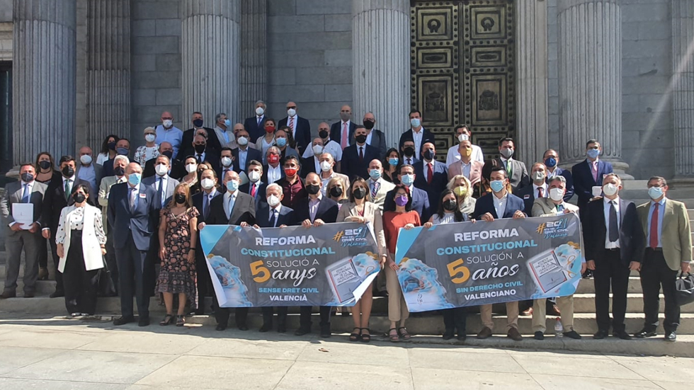 Miembros de distintas instituciones valencianas y de la sociedad civil han llevado a cabo un acto de apoyo al Derecho Civil Valenciano en el Congreso de los Diputados para solicitar a la Junta de Portavoces la tramitación urgente de esta Proposición de Reforma planteada por les Corts desde hace 16 meses.