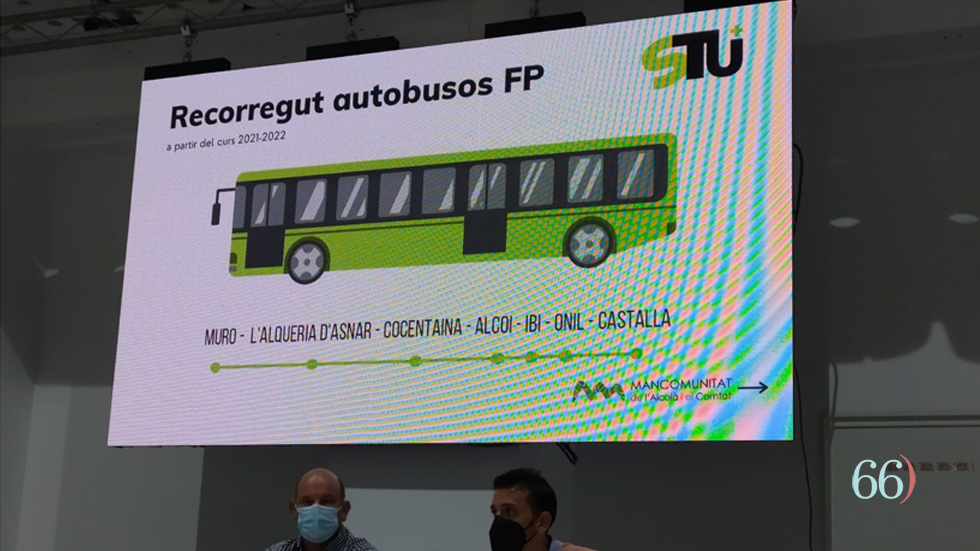 La Mancomunitat de l’Alcoià i el Comtat ha presentat el nou transport públic pensat per a estudiants. L'l’STU+, que així s'anomena, suma trajectes als centres de Formació Professional a la habitual ruta fins la Universitat d’Alacant. D’aquesta manera, les persones que residisquen a les poblacions mancomunades disposaran d’una línia que connectarà Muro, l’Alqueria d’Asnar, Cocentaina i Alcoi amb Ibi, Onil i Castalla.