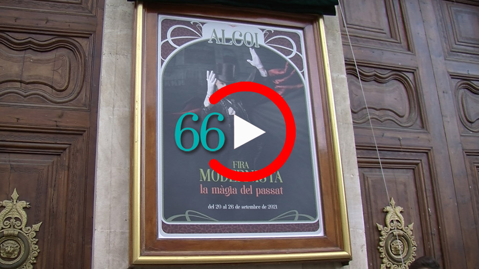 En la façana de l’Ajuntament d’Alcoi ja es pot veure el cartell anunciador de la Fira Modernista 2021 que enceta tota una setmana d'activitats i espectacles que ens transporta als finals del segle XIX i principis del XX.