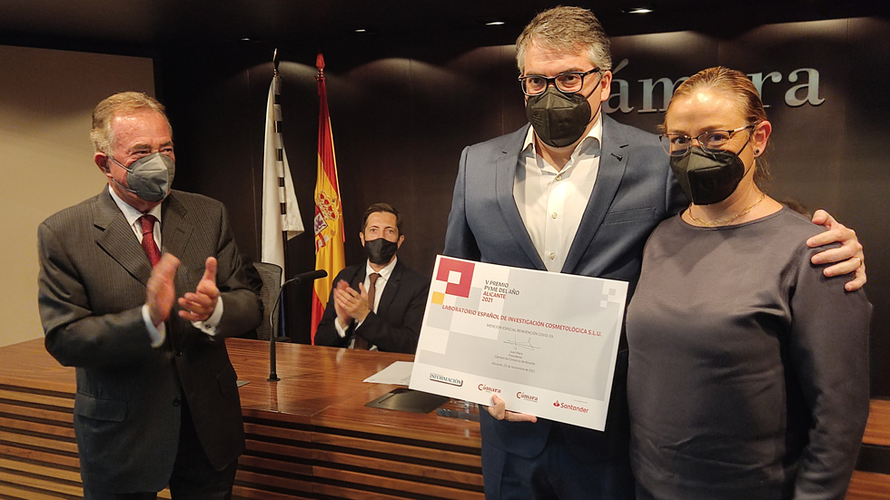 La empresa Laboratorio Español de Investigación Cosmetológica (LABESP), ha sido reconocida como la mejor reinvención empresarial covid-19 en los premios Pyme del año 2021 de Alicante, que conceden el Banco Santander y la Cámara de Comercio de Alicante, en colaboración con la Cámara de España y el diario Información.