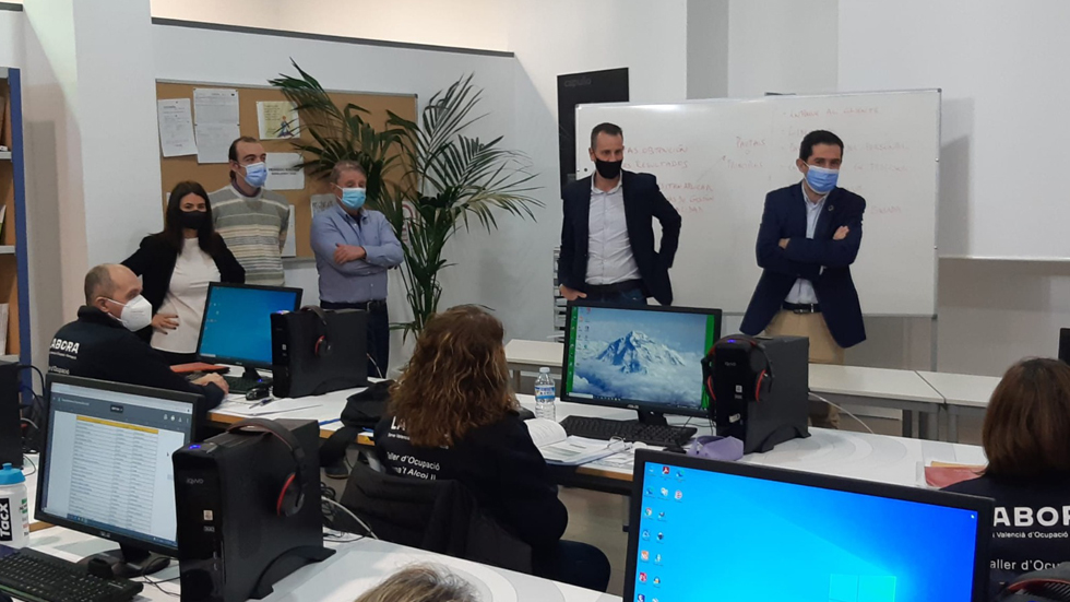 El alcalde de Alcoy, Antonio Francés, y el concejal de Empleo, Empresa y Formación, Alberto Belda, han visitado el taller de ocupación que se realiza en Alcoy durante 2022.