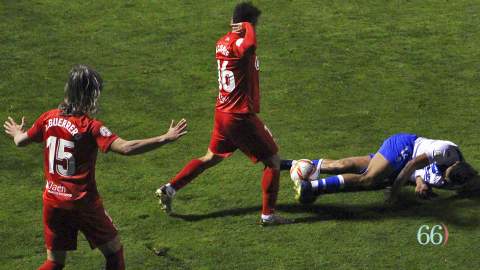 A cuatro del descanso el partido ha vuelto a empezar. Iván Morales ha subido la bola por el lateral derecho del rectángulo de juego hasta que, casi a la altura de la portería ha visto a Pere Cañellas situado en posición de tiro frente a la portería. 2-2.