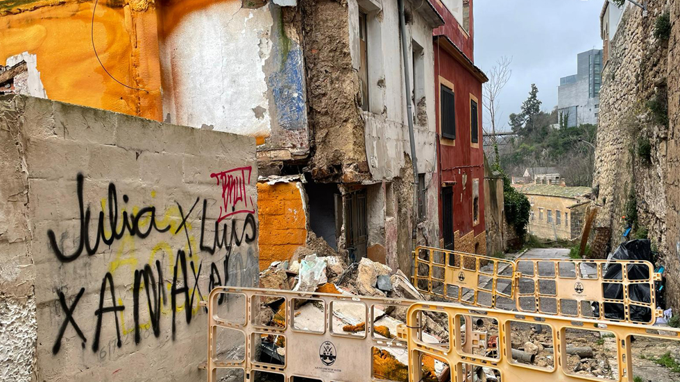 El jueves 24 de marzo los cimientos de la casa no han aguantado más y las paredes se han desmoronado sobre la calle. La Policía local ha acordonado la zona hasta que se retiren las ruinas de la calzada.