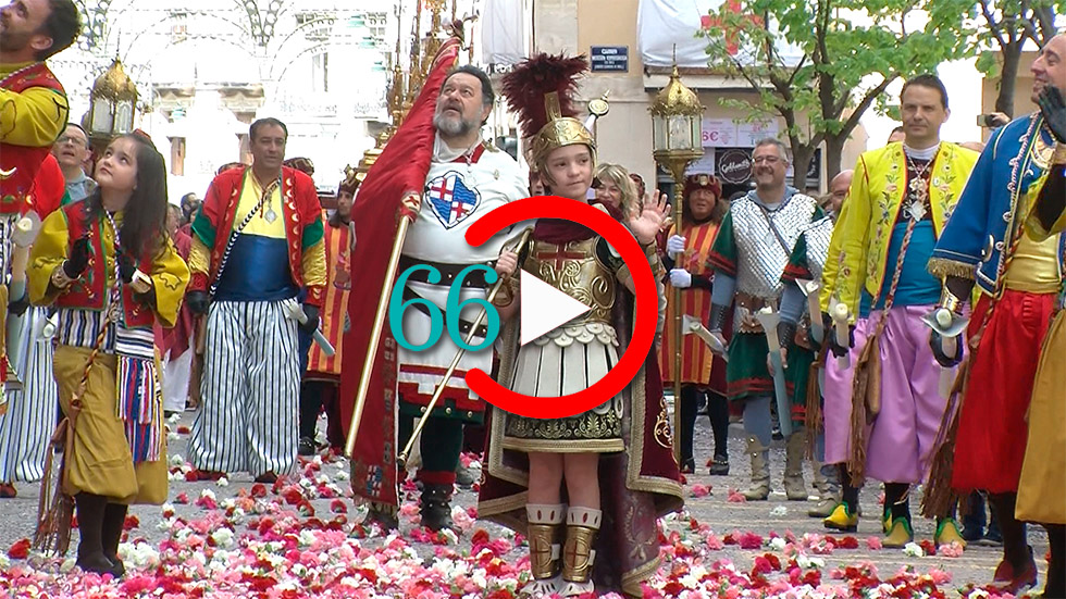 qui ha respost aquests honors amb somriures i salutacions. Aquest any, els Benimerins han estat precíssament en el balcó de la família del Sant Jordiet, des d'onl han compartit el moment dels clavells amb membres de la Filà Chano i, com ja es tradició, amb la càmera de Pagina66).