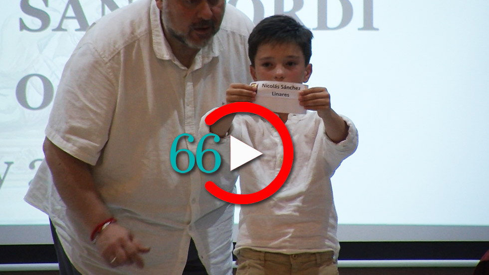 Com marca la tradició, ha sigut l’anterior Sant Jordiet, Fernando Rius, l’encarregat de portar la sort al seu successor. Després de remoure amb força les 14 boles daurades durant uns segons, el nom que ha sorgit de l’escollida ha sigut el de Nicolás Sánchez, jove que aquest any farà 7 anys i cursa els seus estudis en el col·legi La Salle.