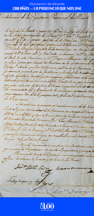 En definitiva, un recorrido por los 200 años de historia de una institución, la Diputación de Alicante, que trabaja por y para el ciudadano, velando por sus intereses y su bienestar, así como por la provincia, con sus comarcas y municipios como referentes, salvaguardando su patrimonio, promoviendo la difusión y la divulgación de su cultura, tradiciones, costumbres e historia.