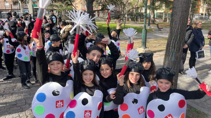 En La Salle Alcoi tenen diverses zones de pati on xiquets i xiquetes han celebrat el Carnestoltes any rere any, però en aquest 2023 s’han decidit a eixir al carrer per a mostrar les seues disfresses.